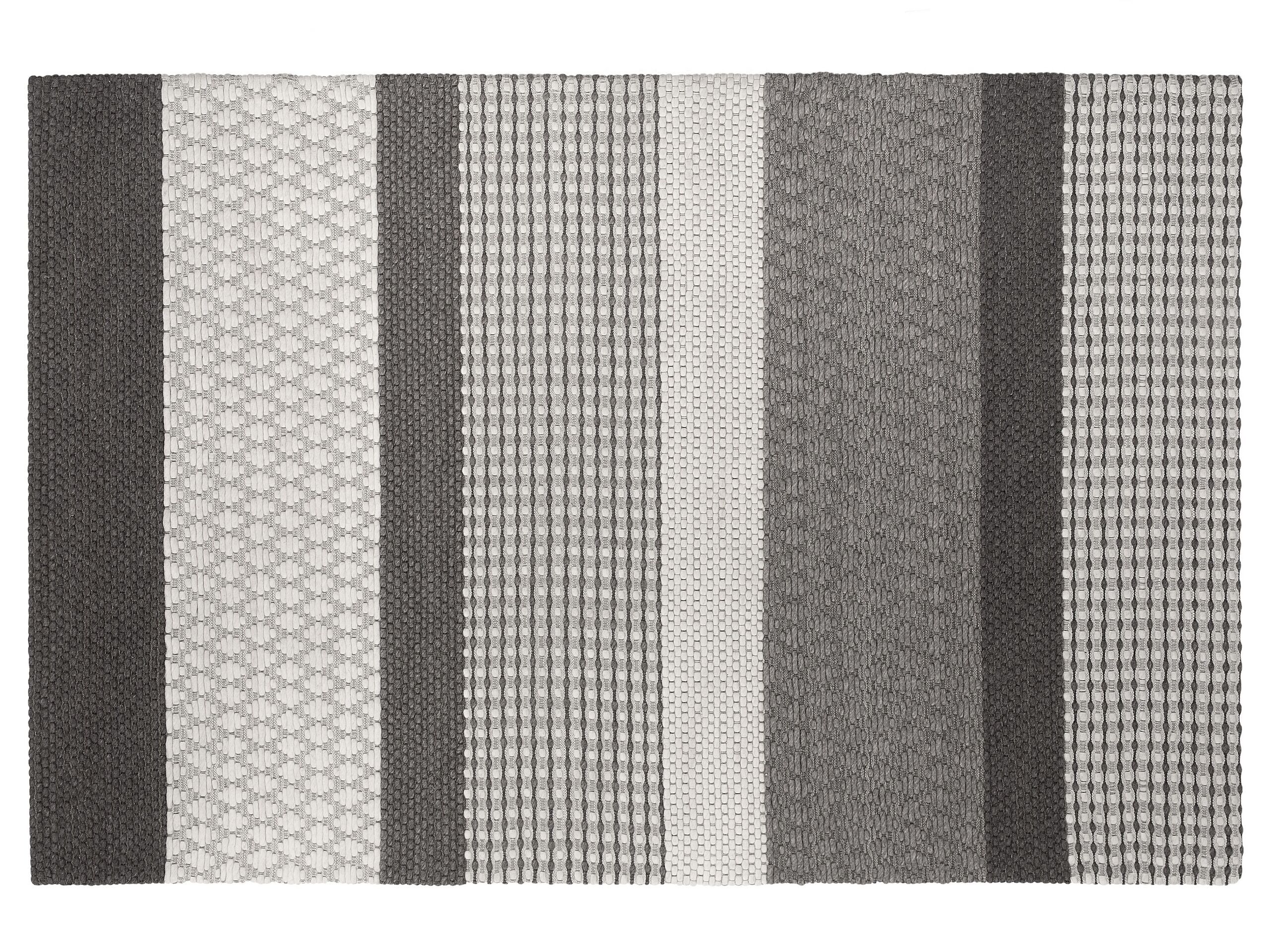 Add a memorable touch to your living space with this modern rug. Made of soft wool, it is pleasant to the touch as well as durable, easily withstanding daily foot traffic in your bedroom or home office. Its grey colours mix makes it a perfect addition to a minimalist interior, but this rug will work just as well in retro, boho and modern décor. Due to its intricate design, this piece will quickly attract attention, becoming an elegant focal point for any room. Details: Color: Grey, White. Main material: Wool. Additional material: Polyester. Weight: 8 Assembly: Does Not Require Assembly