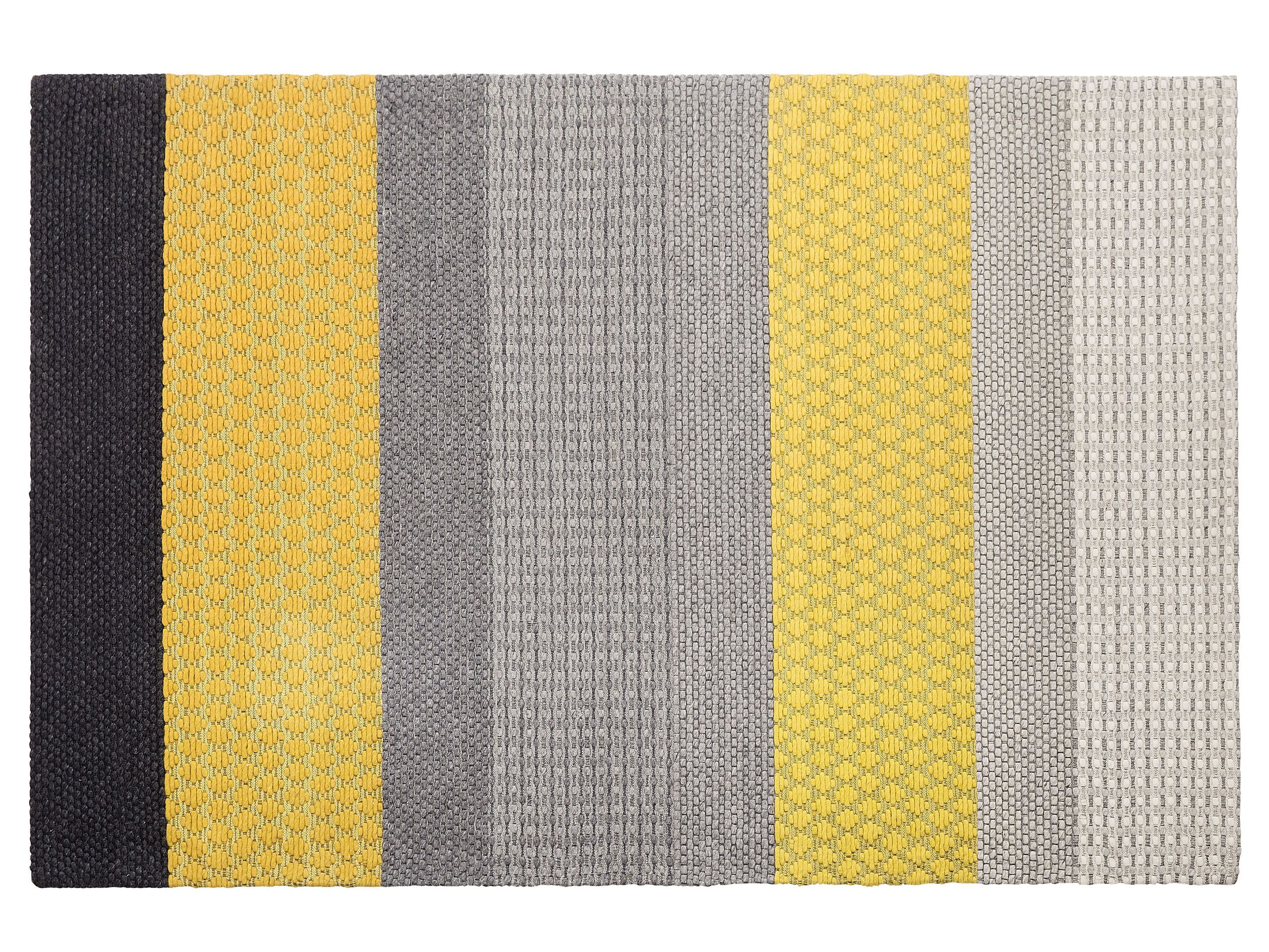 Add a boho-inspired vibe to your interior and liven it up with this low-pile rug. Crafted from a high-quality mix of wool and polyester, it is sure to last for years, and at the same time it provides a soft and pleasant-to-touch texture, perfect for a bedroom or a home office. The combination of yellow, beige, grey and black colours is unique and draws attention, making this piece a very welcoming addition to any space. Details: Color: Multicolour, Black, Grey, Beige, Yellow. Main material: Wool. Additional material: Polyester. Weight: 8 Assembly: Does Not Require Assembly