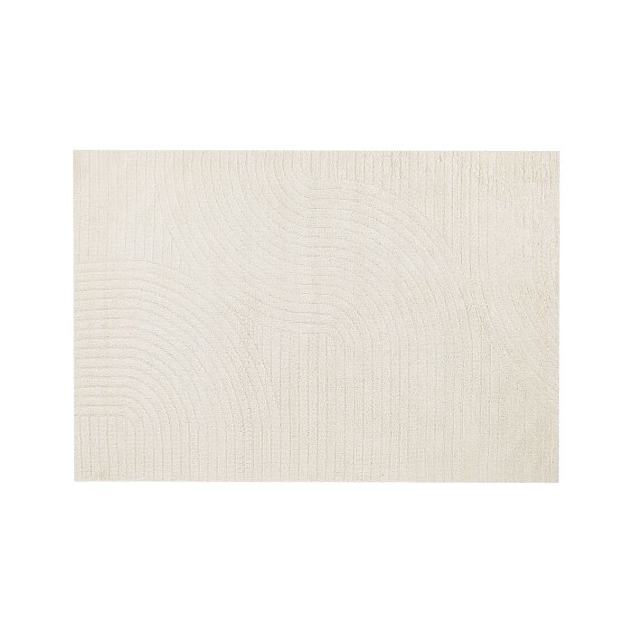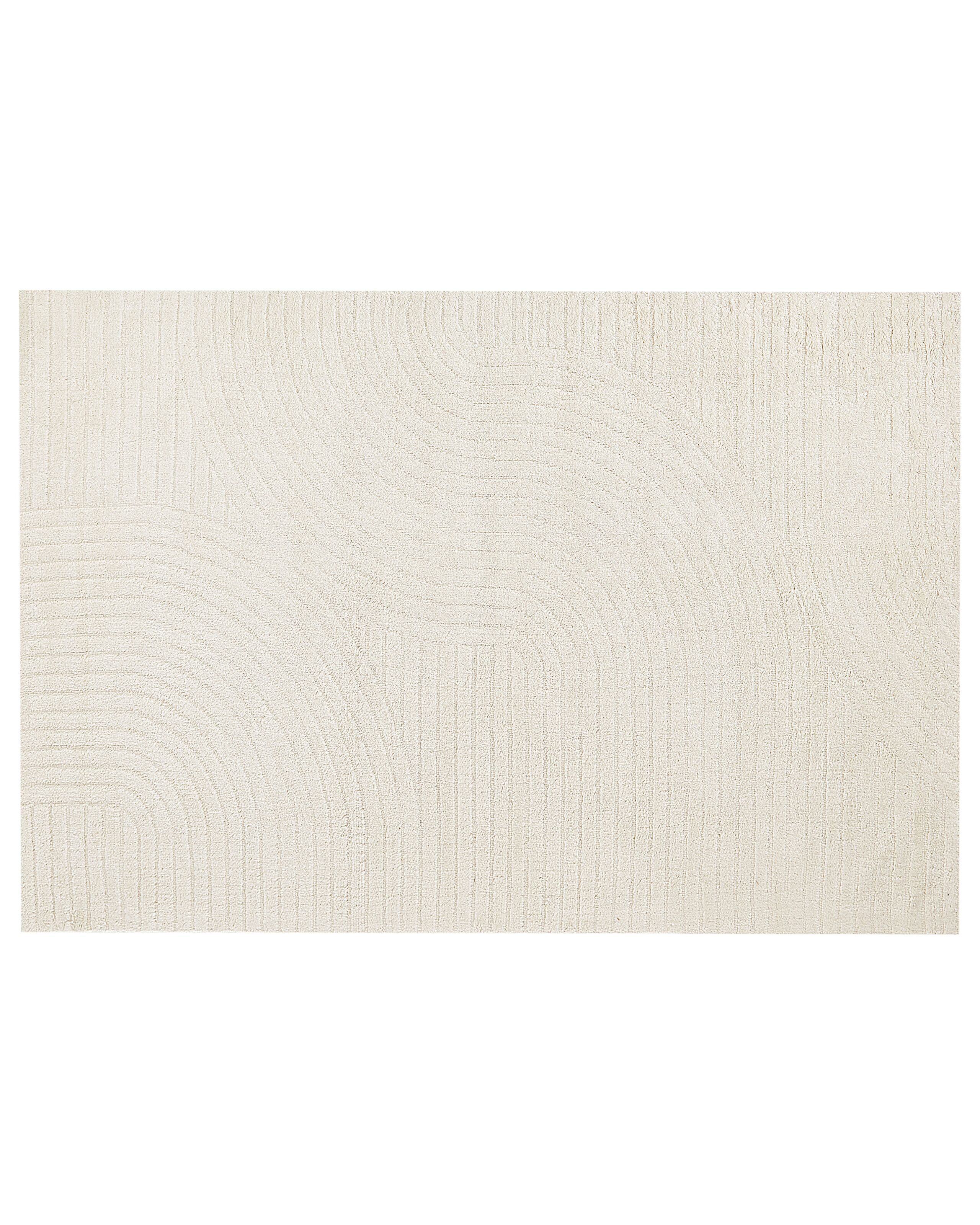 Elevate your space with this luxurious beige wool area rug, a harmonious blend of warmth and sophistication. Crafted with precision, its intricately carved abstract geometric pattern adds a touch of modern artistry to your floor. The plush wool pile, gentle on the feet, is skilfully supported by a cotton backing, ensuring durability and comfort. Ideal for homes with floor heating systems, this rug seamlessly marries style and functionality, creating a cosy haven in any room. Details: Color: Beige. Main material: Wool. Additional material: Polyester. Material Composition: 90% Wool, 10% Polyester Weight: 9 Assembly: Does Not Require Assembly