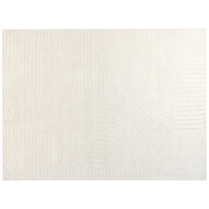 Elevate your space with this luxurious beige wool area rug, a harmonious blend of warmth and sophistication. Crafted with precision, its intricately carved abstract geometric pattern adds a touch of modern artistry to your floor. The plush wool pile, gentle on the feet, is skilfully supported by a cotton backing, ensuring durability and comfort. Ideal for homes with floor heating systems, this rug seamlessly marries style and functionality, creating a cosy haven in any room. Details: Color: Beige. Main material: Wool. Additional material: Polyester. Material Composition: 90% Wool, 10% Polyester Weight: 31 Assembly: Does Not Require Assembly
