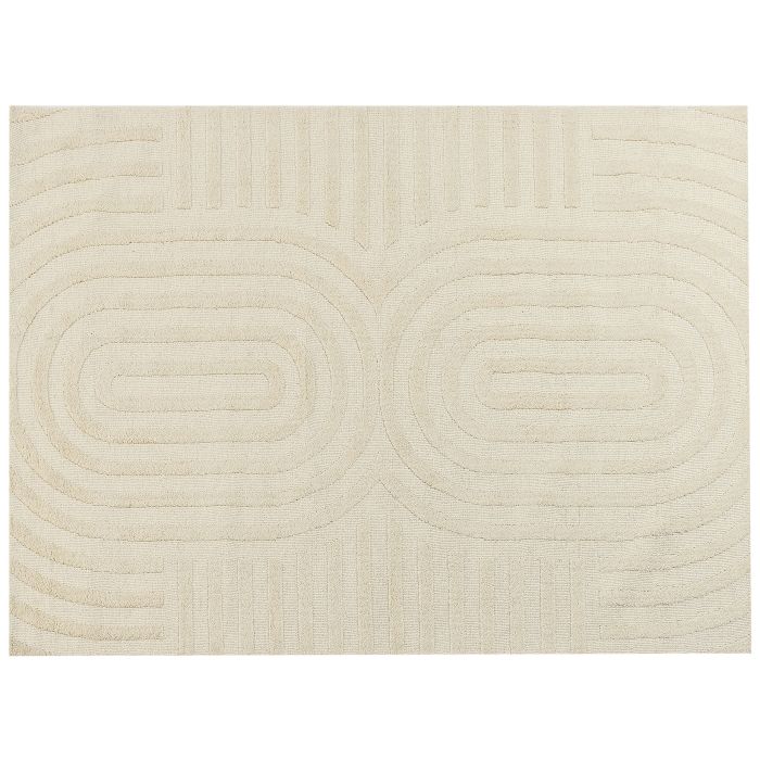 This beige wool rug was designed for unparalleled comfort and versatility. Crafted with a luxurious pile-loop texture, its solid colour and geometric monochrome pattern gives off a modern feel. Elevate any space with this cosy, adaptable rug, perfect for adding warmth to your home decor. Details: Color: Beige. Main material: Wool. Additional material: Polyester. Material Composition: 90% Wool, 10% Polyester Weight: 31