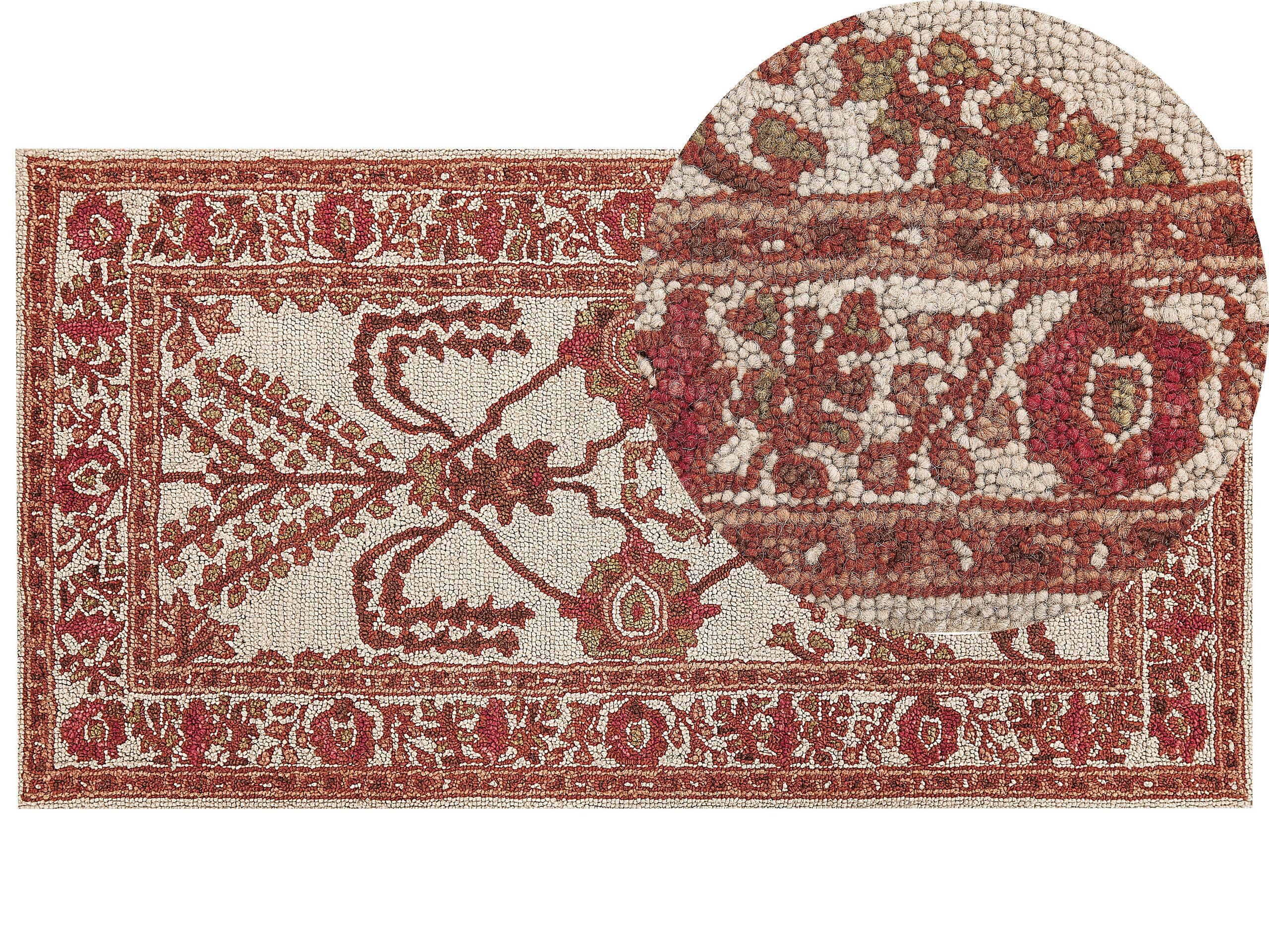Upgrade the look of your living area with this elegant rug in a classic oriental pattern. With an overlapping floral pattern in multiple shades, it will bring any interior décor to life. The rug is hand tufted from wool that gives it a soft and warm feel. Incorporate this beautiful rug in your home to give it a luxurious look. Details: Color: Beige, Orange, Brown, Red. Main material: Wool. Material Composition: 100% Wool Weight: 5.4 Assembly: Does Not Require Assembly