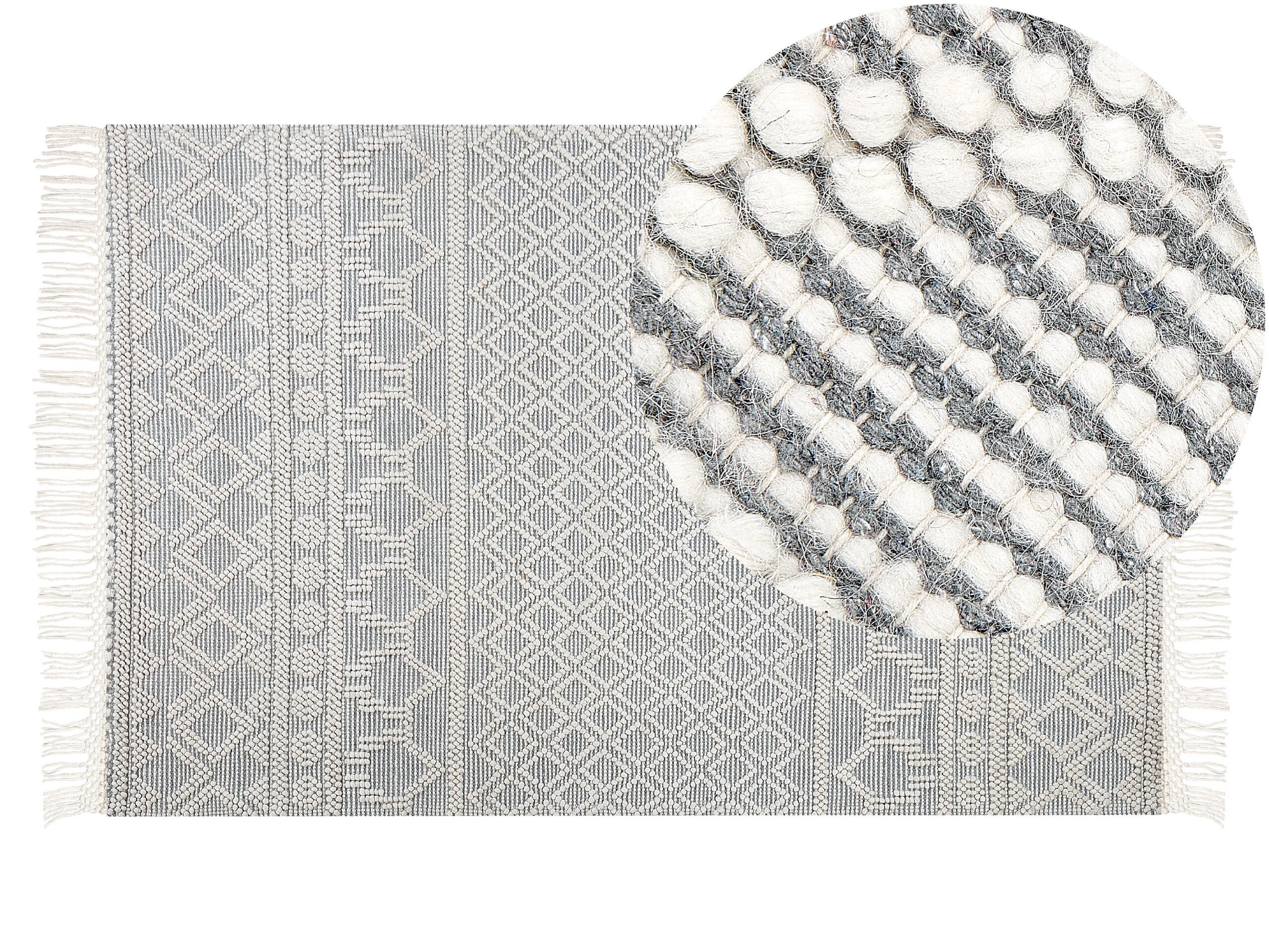 Wool Area Rug with Geometric Pattern 160x230cm Beige and Grey