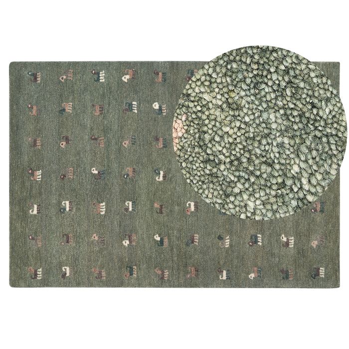 Wool Gabbeh Area Rug with Animal Motif 160x230cm Green