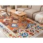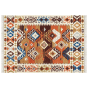 Elevate the décor of your interior with this unique kilim rug and experience the warmth and charm they bring to any living space. Handwoven with the use of traditional technique from a blend of wool and cotton, this piece offers high quality that will please the eyes for years to come. Embracing tribal influences, the intricate geometric pattern in various colours makes for a perfect centrepiece. Additionally, delicate tassels, add a touch of whimsy to the design. Details: Color: Multicolour, Orange, Brown, Blue. Main material: Wool. Additional material: Cotton. Material Composition: 80% Wool, 20% Cotton Weight: 9 Assembly: Does Not Require Assembly