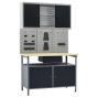 This set is combined with 1 workbench, 3 wall panels and 1 wall cabinet, which will make a practical storage solution to your workshop and garage. The heavy-duty workbench, standing out with ample storage space and 300 kg loading capacity. This workbench has an open compartment equipped with a drawer, to organize your tools, parts and accessories such as screws, nails and adhesive tape properly. . There are 2 shelves and a large compartment with 2 lockable doors, which can easily accommodate drills, cable drums and grinders. Additionally, the feet are height-adjustable. This workstation is crafted from premium steel and engineered wood, making it extra sturdy, durable and easy to clean. It is easy to assemble. These tool panels crafted from solid steel can bear the weight of various tools, like drills, pliers, screwdrivers and wrenches. The panels are perforated for fixing tools easily and securely. The 3 wall panels can be fixed together for extra rigidity. It is an ideal addition to your workbench and workshop cabinets with a practical width of 120 cm. The tool storage unit features three height-adjustable shelves and a perforated plate with holes that can be used to hang various kinds of tools such as spanners, pliers, hammers, etc. Equipped with two lockable doors (2 keys included for each door), this tool cabinet provides extra safety. It is made of metal with an extra strong scratch-proof coating, making it durable and easy to clean. This product needs to be assembled.