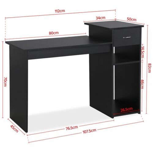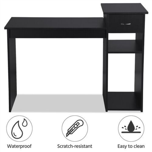 Writing and Computer Desk with Drawer and Shelves Study Table - Black