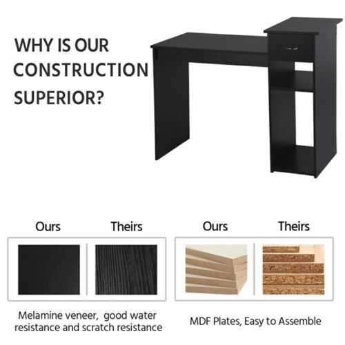 - Spacious Desktop: Waterproof melamine veneered desktop provides an adequate workplace and easy to clean
