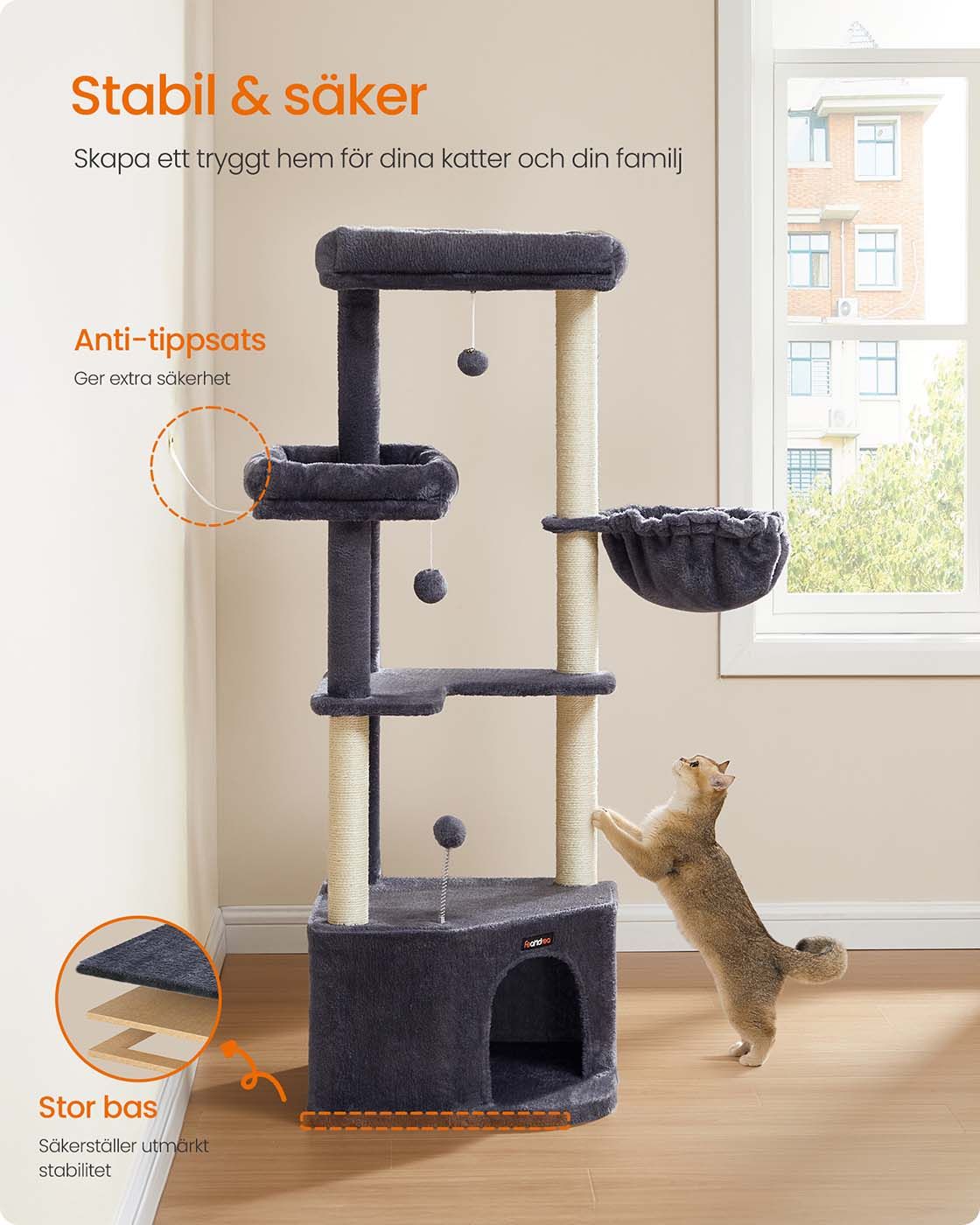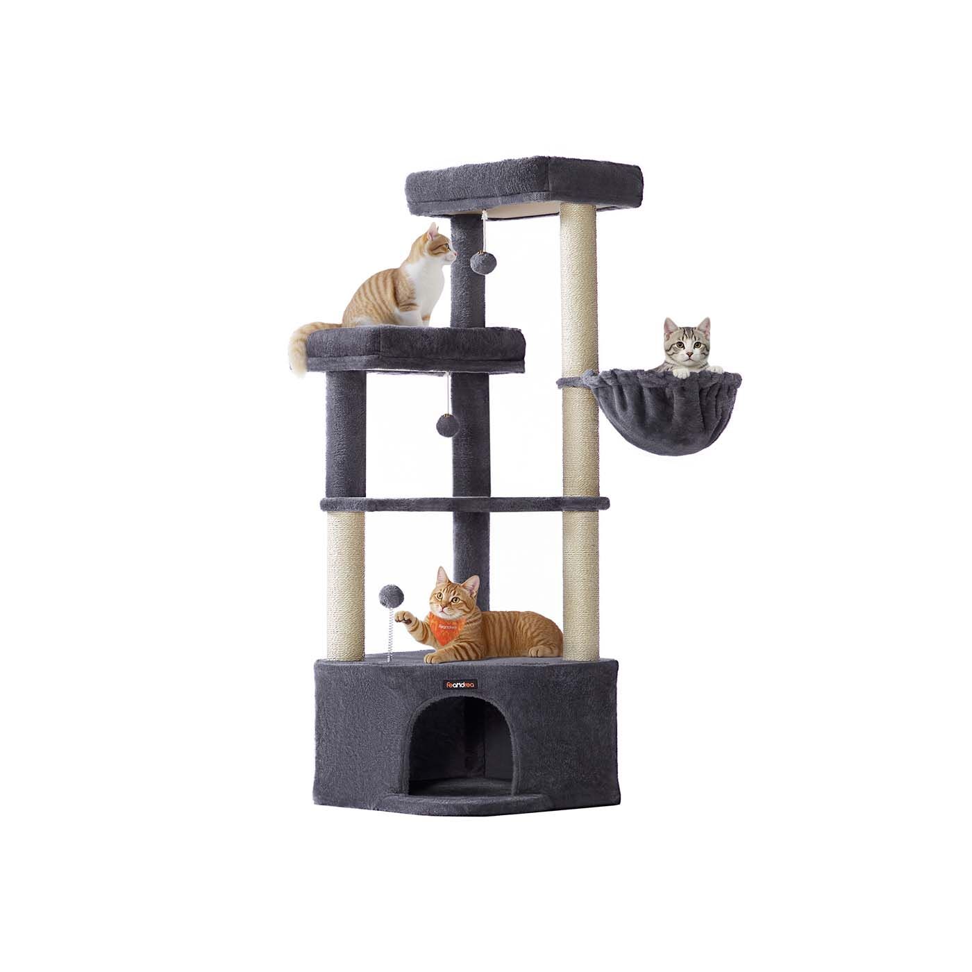 WYNSTEAD Cat Tree Tower with Large Cave Perches Basket and Scratching Posts - Dark Grey