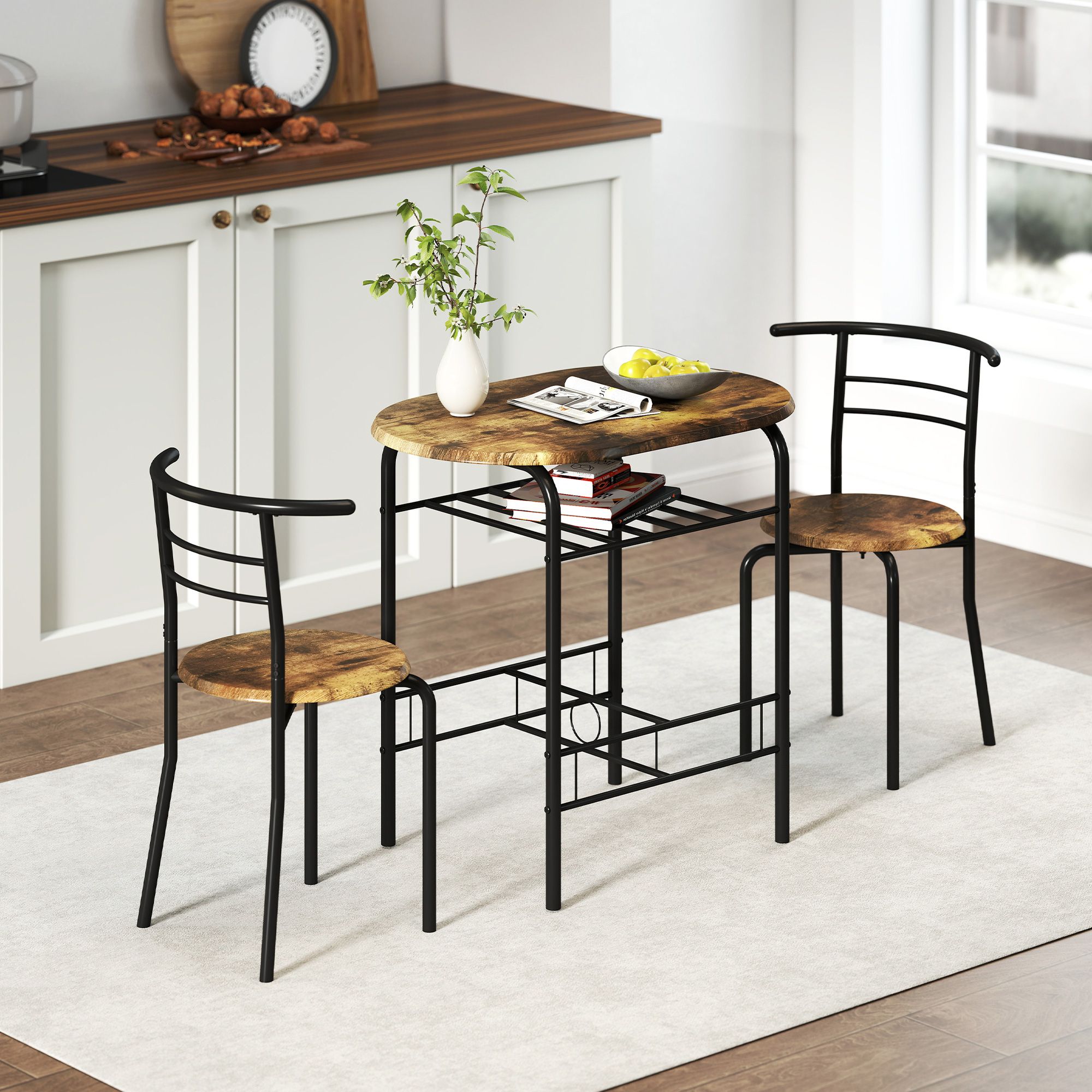 WYNTHERRA Three Piece Compact Dining Table and Chair Set - Rustic Brown