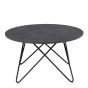 Accentuate your living area with our round coffee table, which features a textured matt black top. The unique wire base, crafted from matte black steel, adds an industrial yet refined touch, perfect for modern interiors seeking a blend of style and practicality.