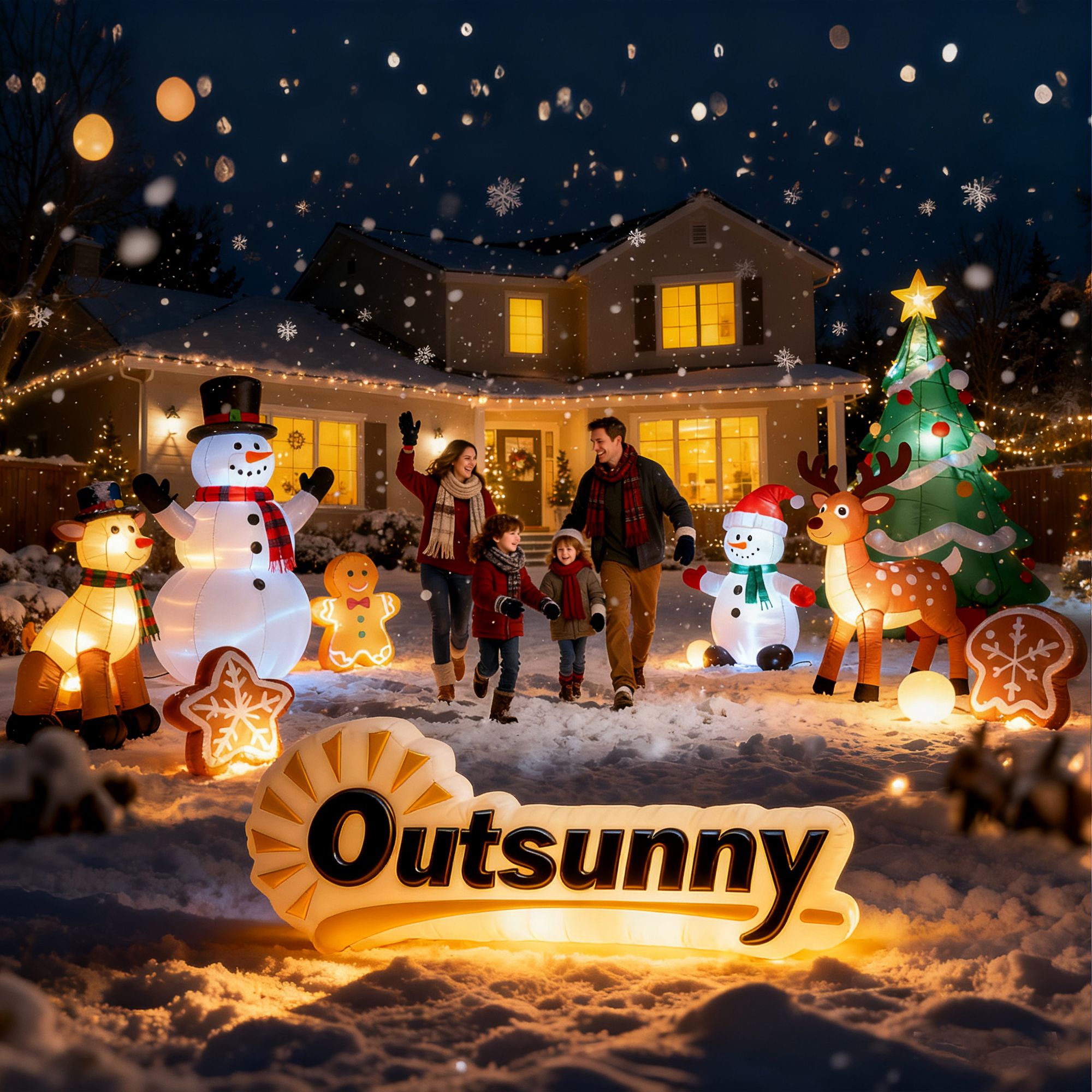 XANDRISSA 7FT Hanging Christmas Decor Inflatable Santa with Dog and Built in LED Lights - Red