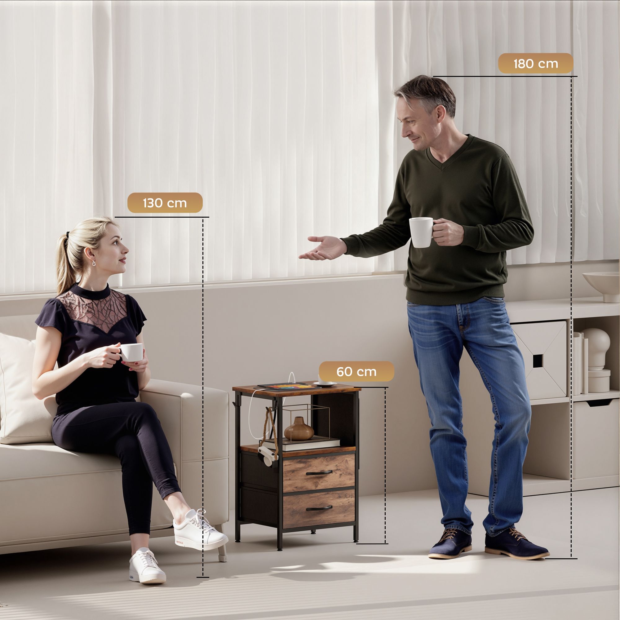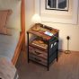 YARDWELL Bedside Table with Charging Station - Rustic Brown