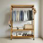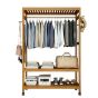 YAVONTE Clothes Stand Heavy Duty Wooden Garment Rack with Wheels - Natural