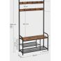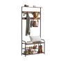 YAVONTE Coat Tree Stand with Bench and Shoe Storage 9 Hooks - Rustic Brown