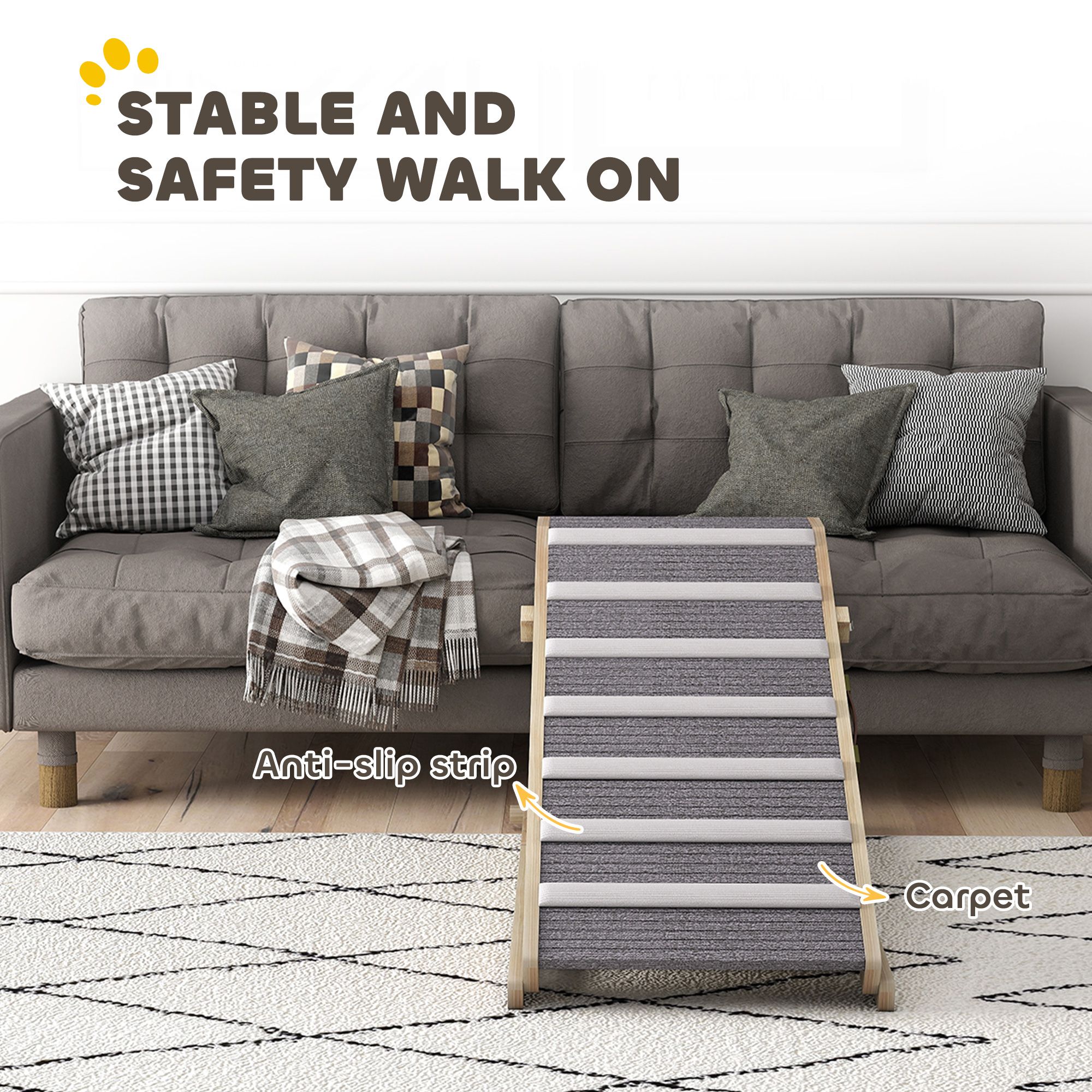 YENDELL Adjustable Folding Dog Ramp for Couch, 4 Height Levels - Natural