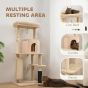 YLVAROS Cat Tree with Scratching Posts and Cat Bed 132cm - Beige