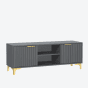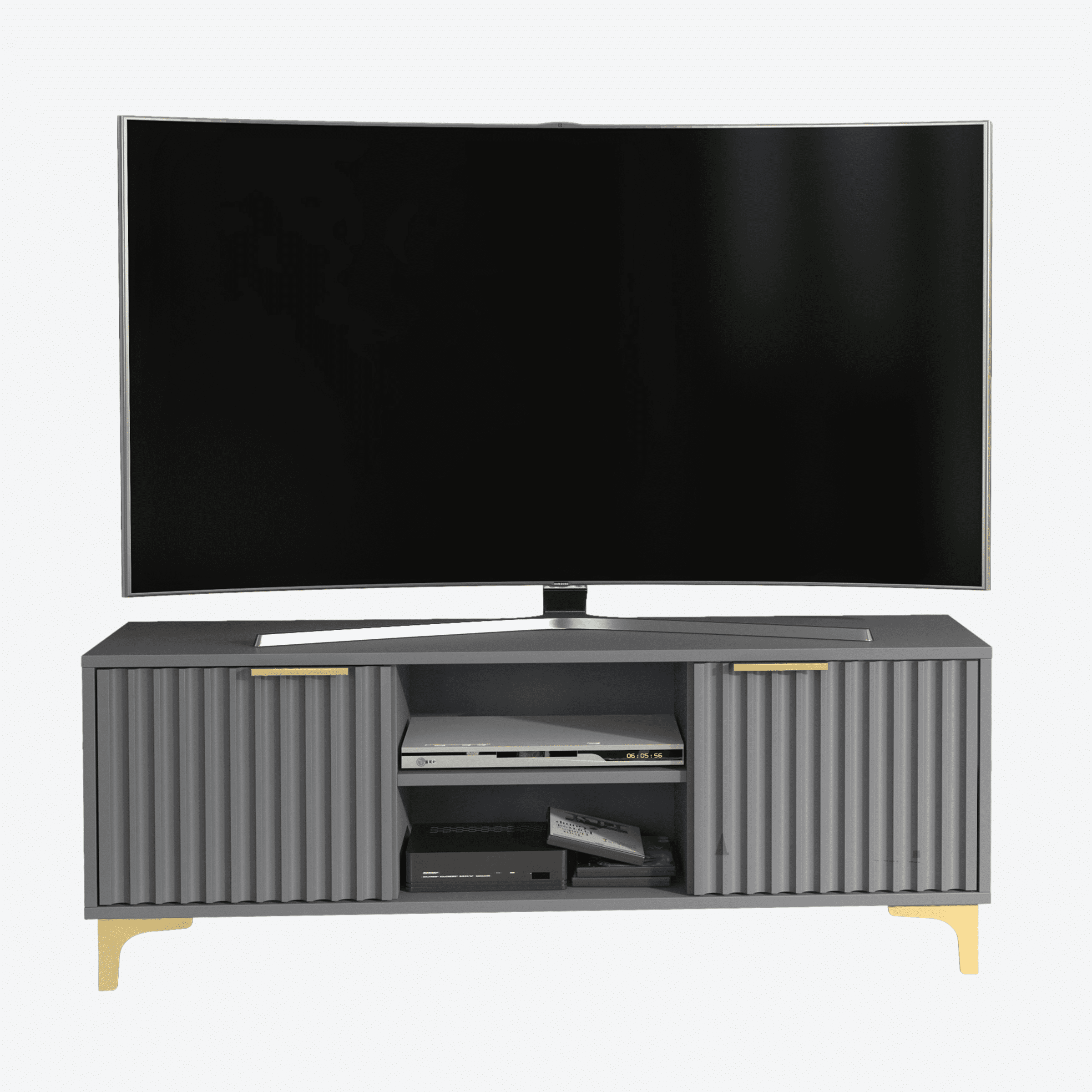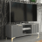 ZAMBA Modern TV Unit Cabinet Elegant Fluted Doors And Gold Accents 120cm - Grey