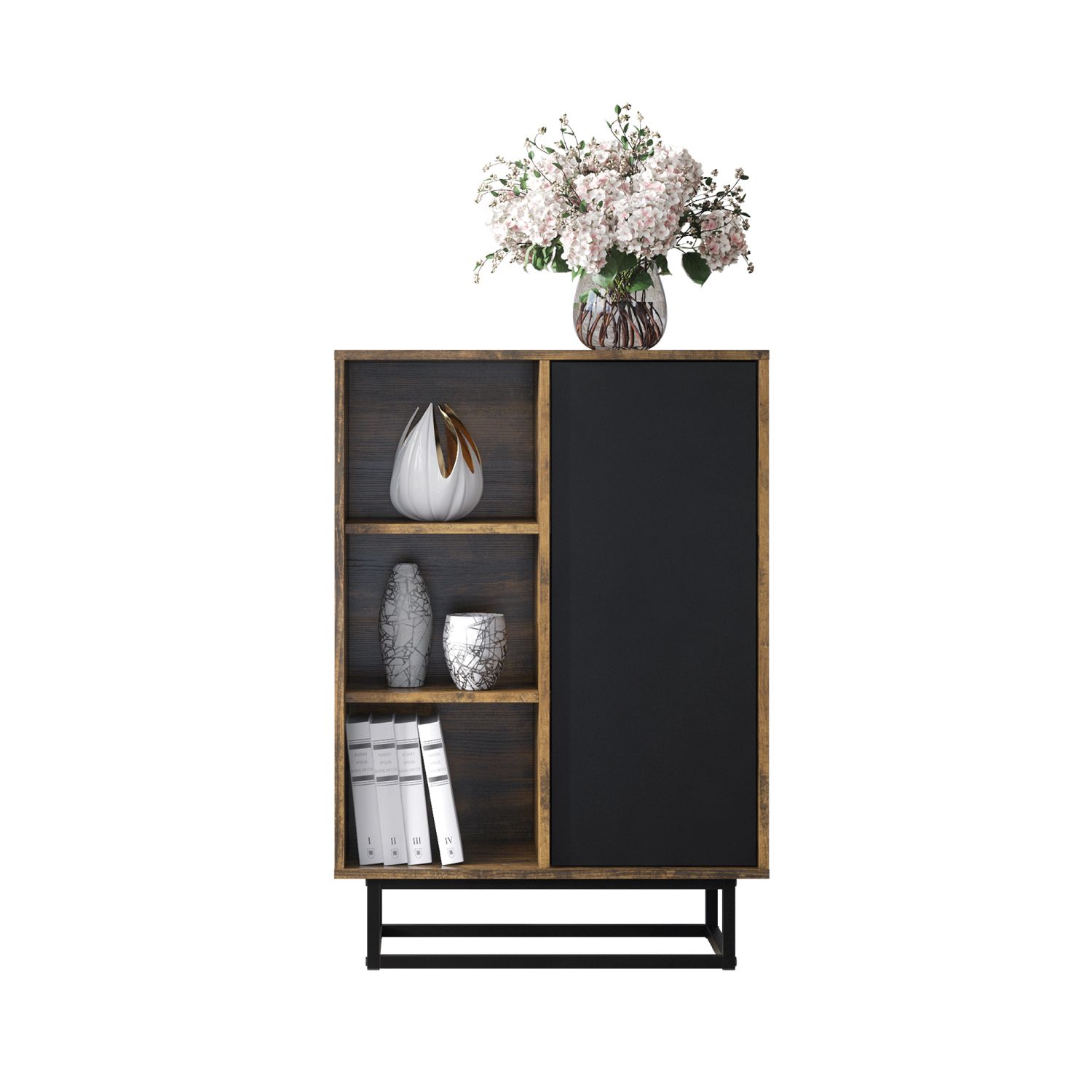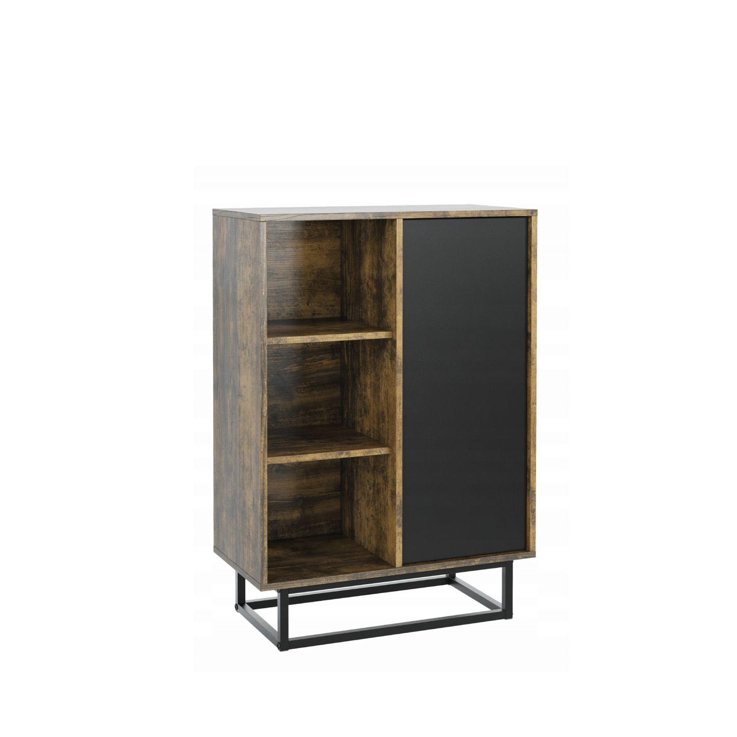 The ZAMORA Loft Sideboard elevates your living space with its stylish and practical design, making it a perfect addition to modern interiors. Measuring 70cm (W) x 100cm (H) x 35cm (D), this compact sideboard seamlessly combines functionality with contemporary aesthetics, making it ideal for a variety of spaces, from living rooms to hallways. The sideboard features a single push-to-open door that opens to reveal two internal shelves, creating three compartments for discreet and organized storage. On the left side, three open compartments provide a versatile display area for decorative items, books, or personal touches, balancing practicality with visual appeal. Crafted from durable MDF and chipboard, the ZAMORA Loft Sideboard is built to last, while its sturdy black metal legs add industrial charm to its clean lines and minimalist design. Perfect for both modern and rustic interiors, this sideboard combines elegance with utility, transforming any room into a stylish and organized space. Available in Dark Oak, Dark Oak & Black Matte Door, and Rustic & Black Matte Door.