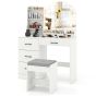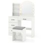 ZEEN Makeup Vanity Desk with Mirror and Lights Dressing Table and Stool Set-White