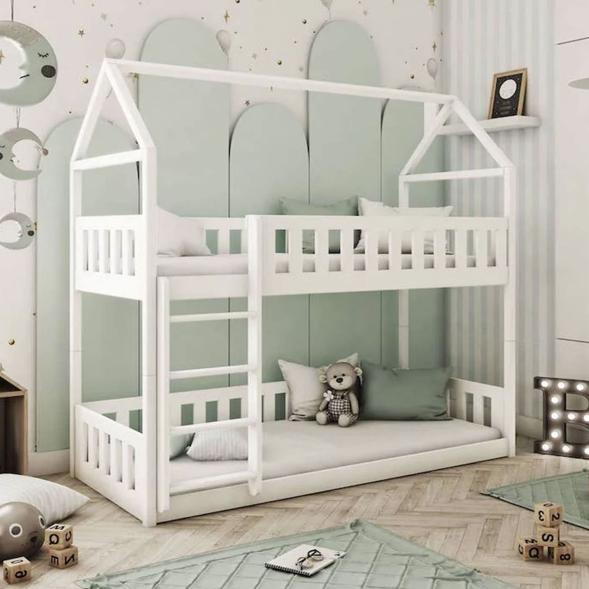 Experience the perfect blend of style and comfort with the Zeke Fox Wooden Bunk Bed featuring a Foam/Bonnell Mattress – an ideal haven for your child's restful nights. Crafted from solid pine wood, this bed not only ensures durability but also embraces a health-conscious design with its three-layered water-based paint. The universal ladder provides flexible assembly, and non-removable safety guards offer added security. Effortlessly convertible into two separate beds, it adapts to your child's evolving needs. With a slatted pinewood base and Foam/Bonnell Mattresses featuring open coil springs and a zipper cover, it's a secure and cozy sanctuary.