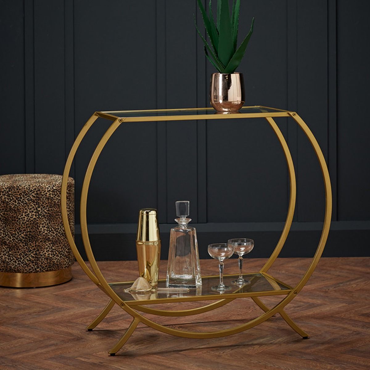 With an elegant gold metal finish and glass tops, the Zenor console unit will look exceptional in your home and practical too,