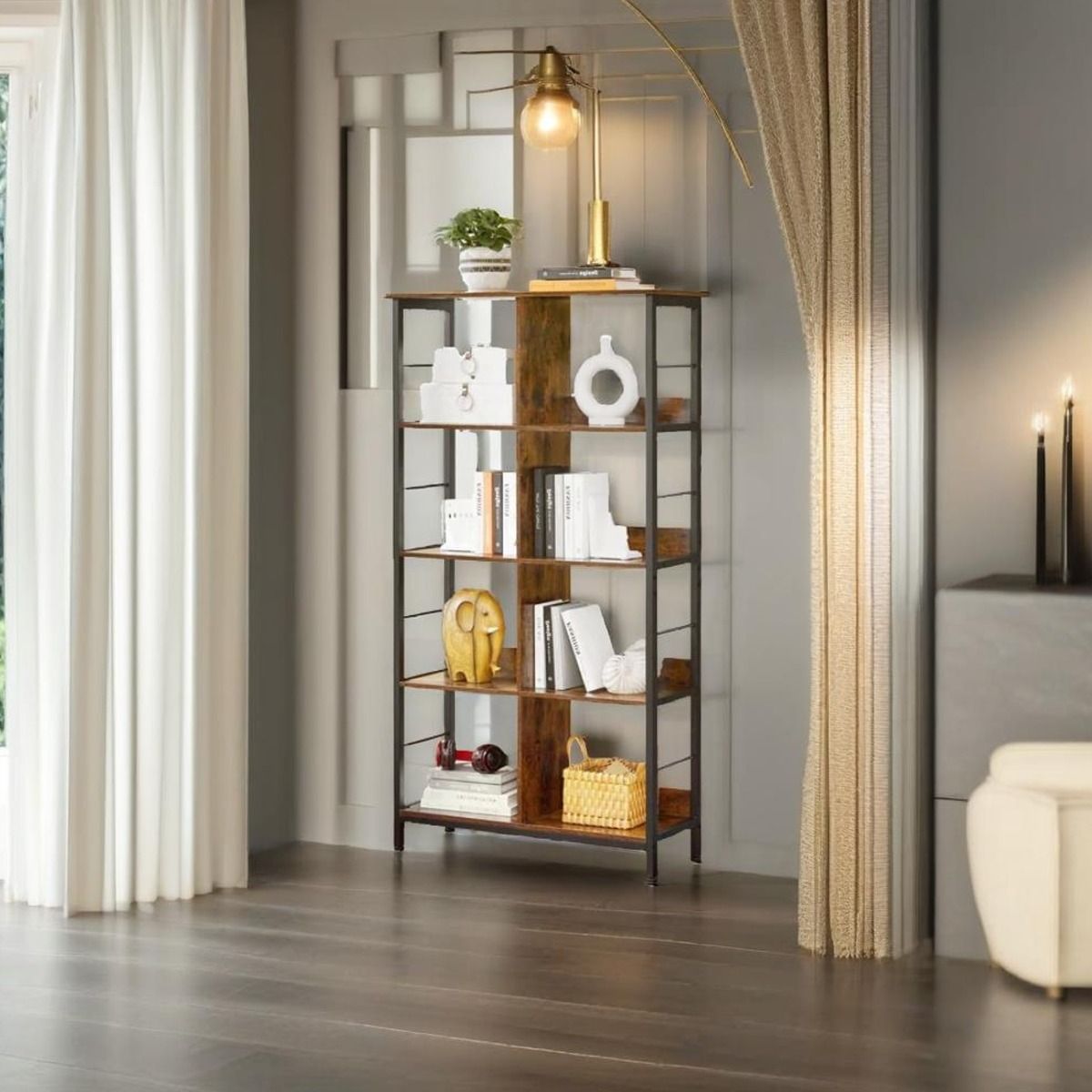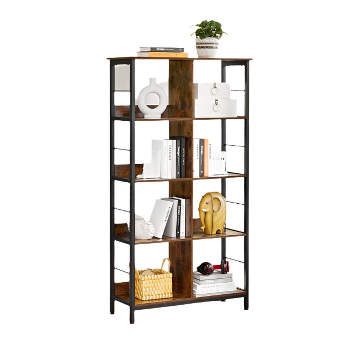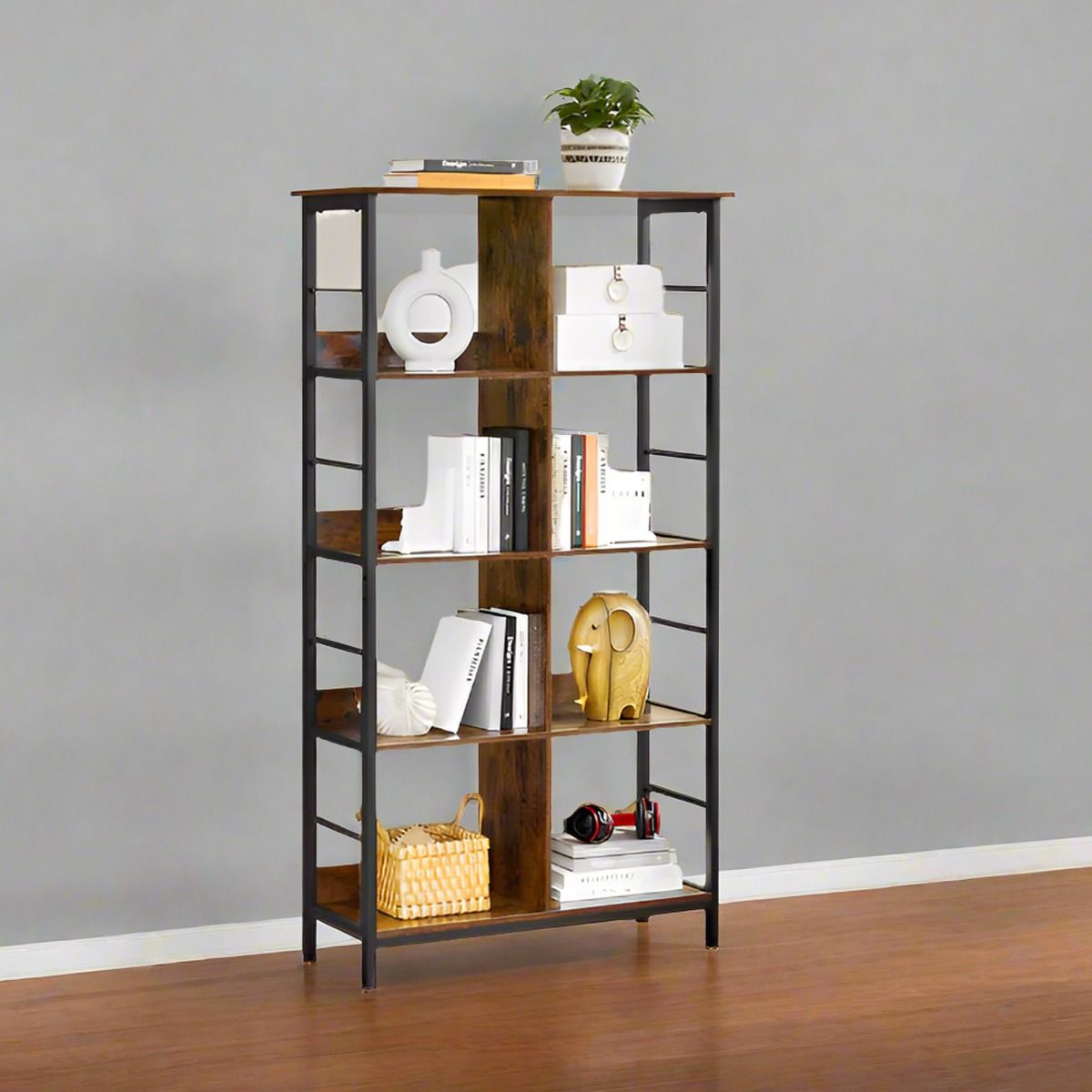 ZEPHRON Bookcase 4-Tier Ladder Display Shelf - Rustic Brown and Black
