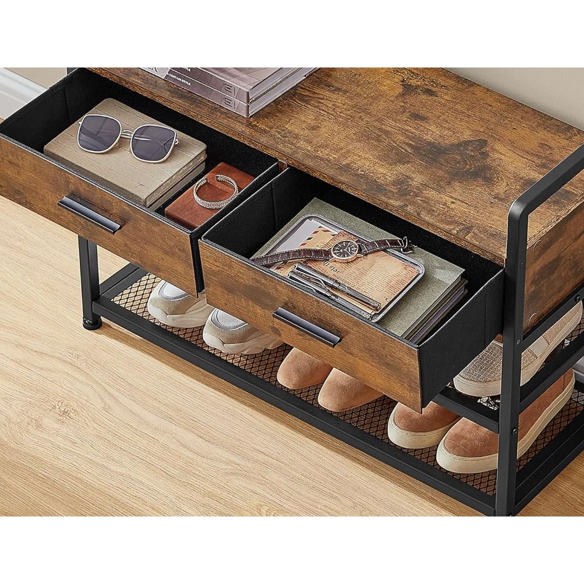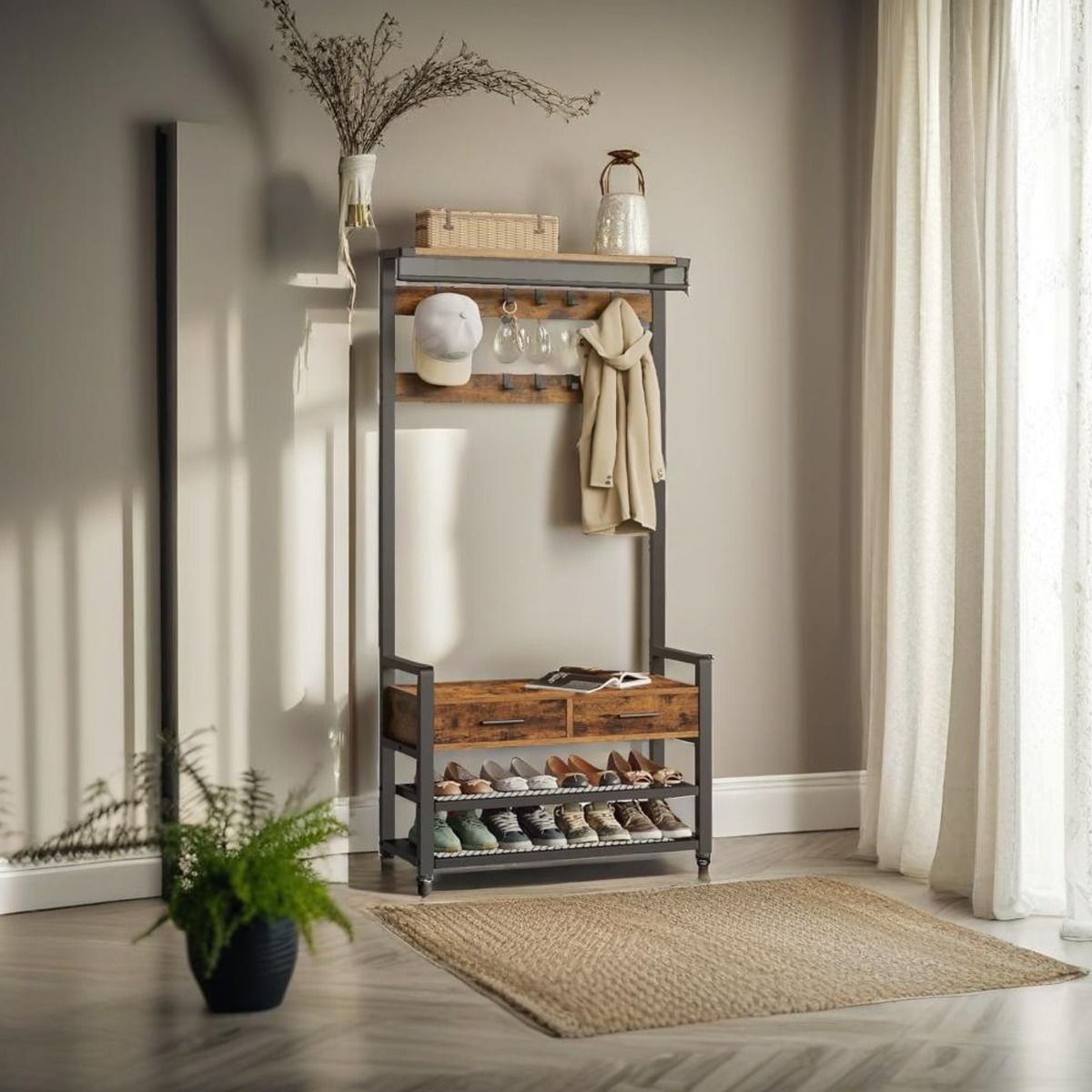 ZEPHRON Hall Tree Entryway Coat Rack with Shoe Bench and Storage Shelves - Rustic Brown