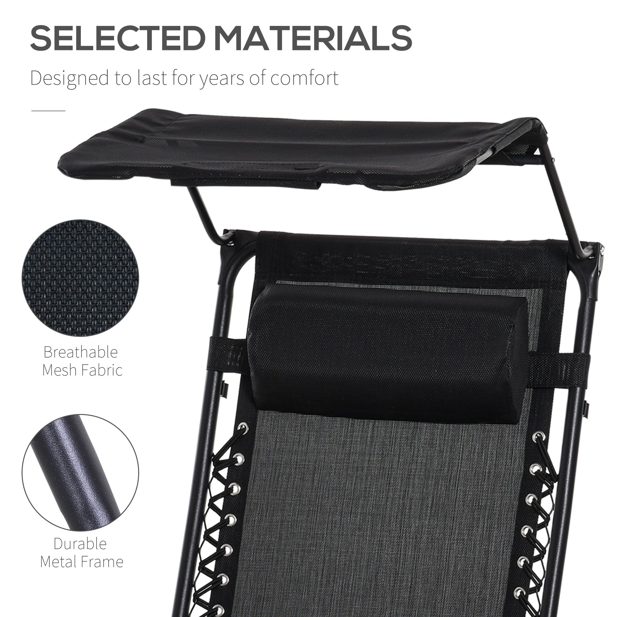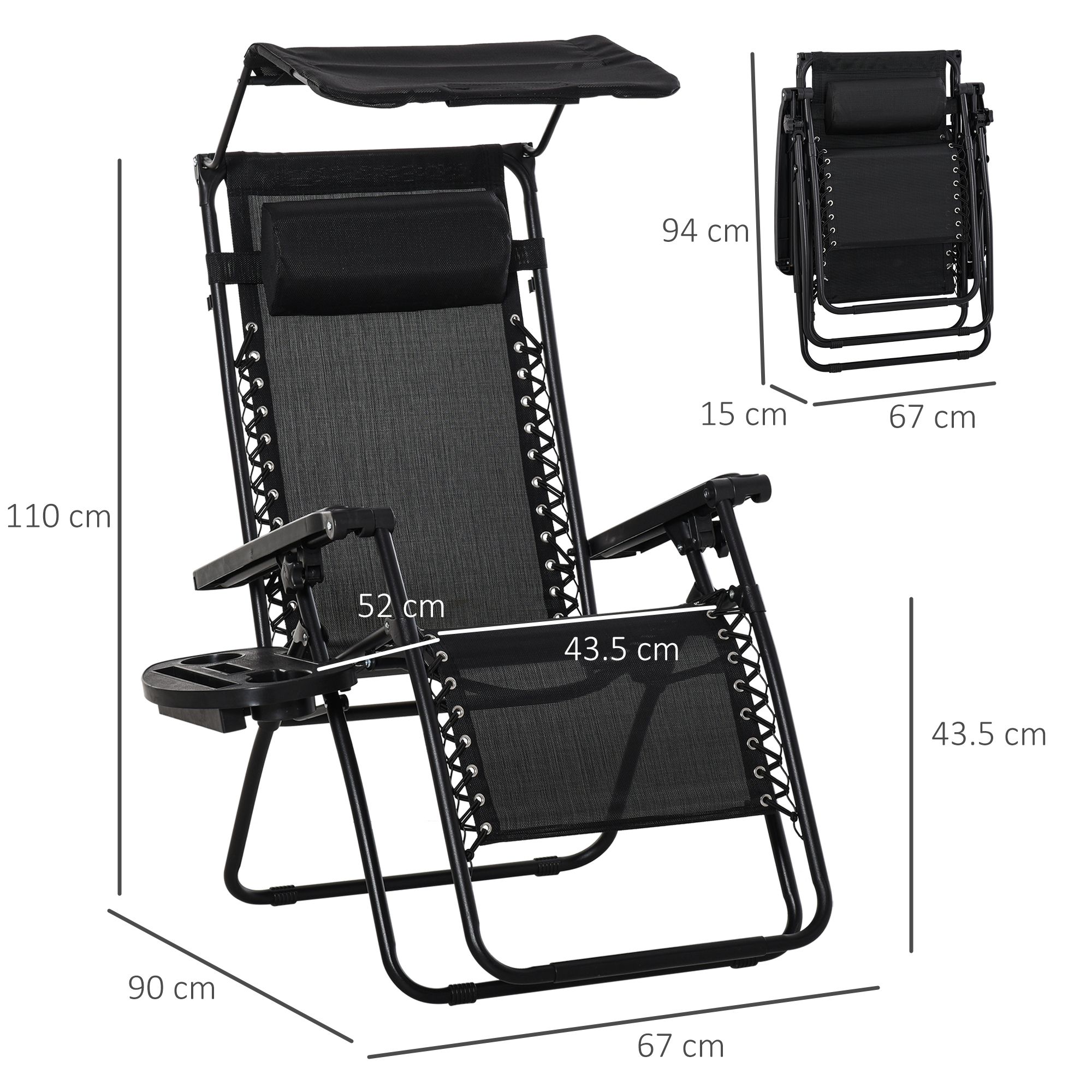 Zero Gravity Garden Deck Folding Chair Patio Sun Lounger Reclining Seat with Cup Holder & Canopy Shade - Black