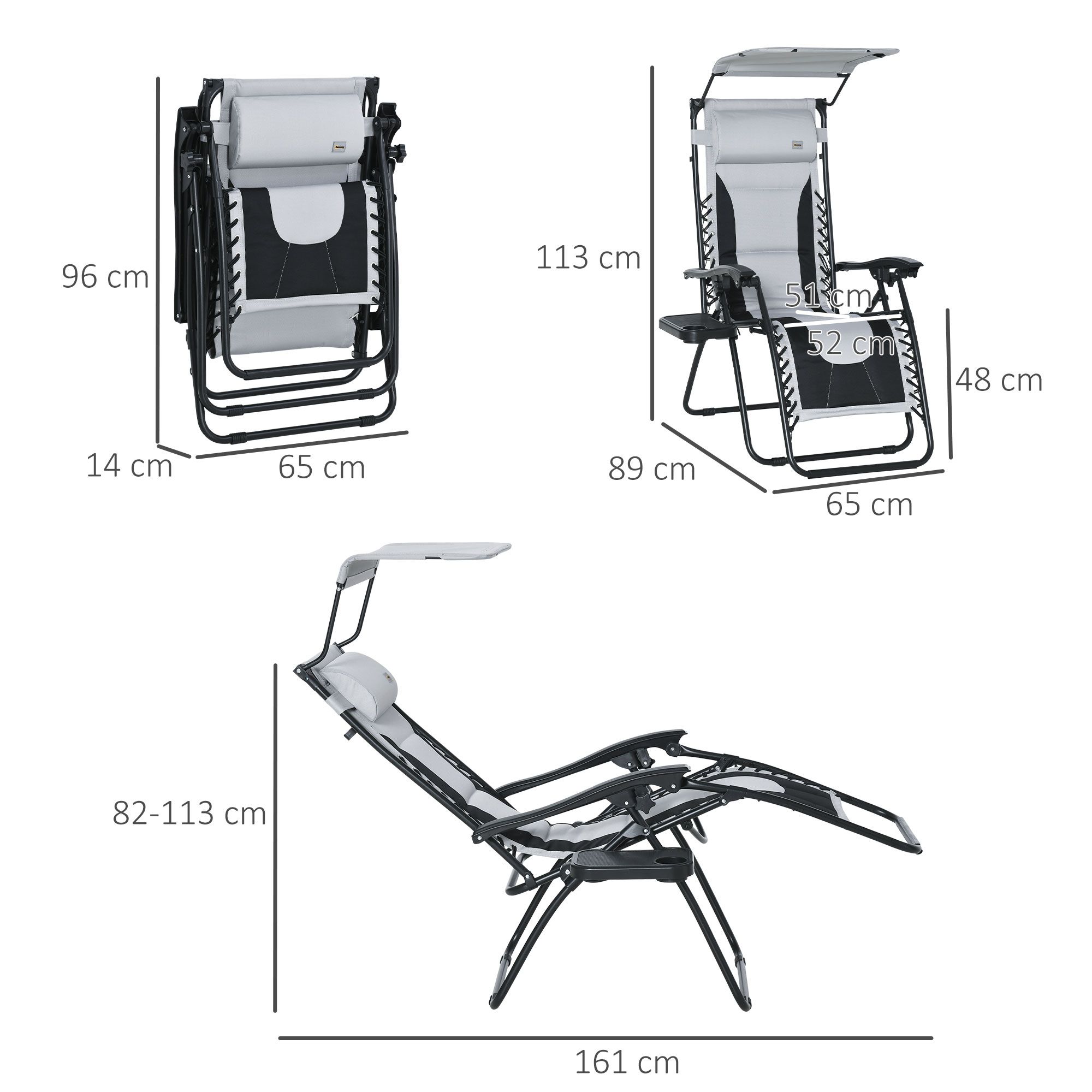 - Folding Dimension: 96L x 65W x 14H cm