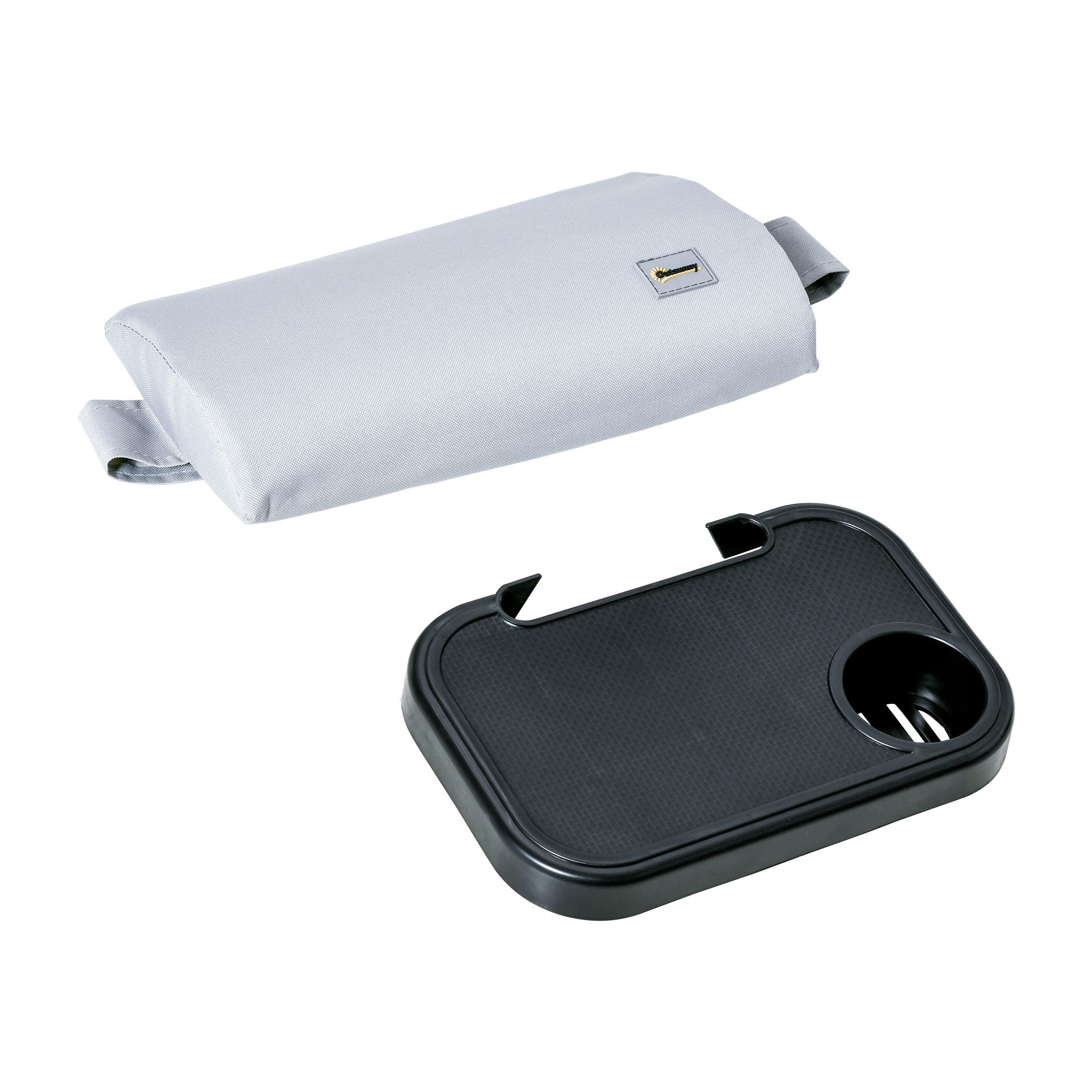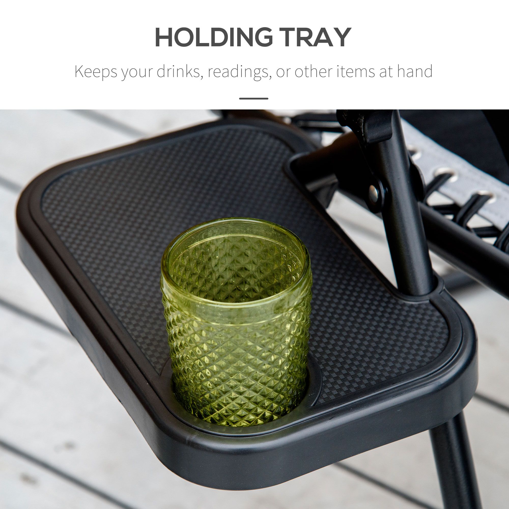 - Tray with cup holder to keep drinks within easy reach
