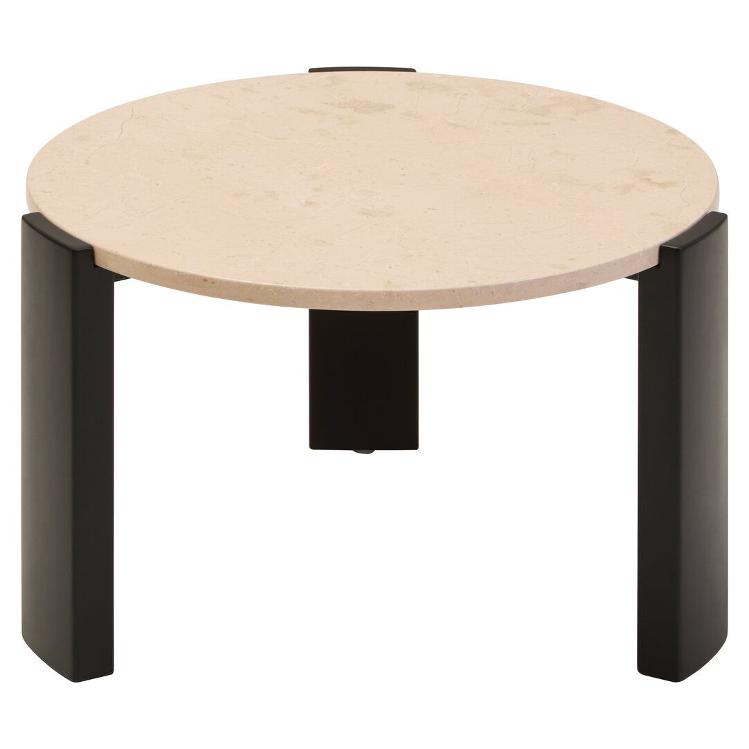 The ZERVORA small round coffee table brings a monochromatic accent to modern living rooms with its cream marble top and black finish acacia wood legs.