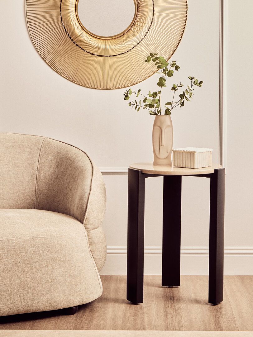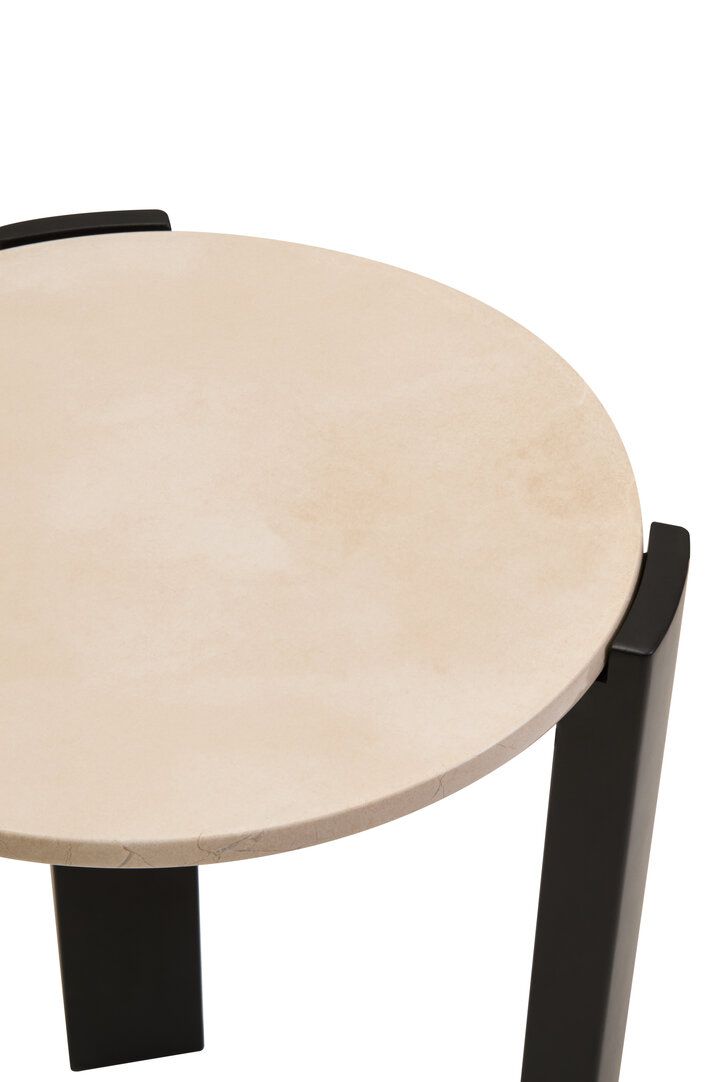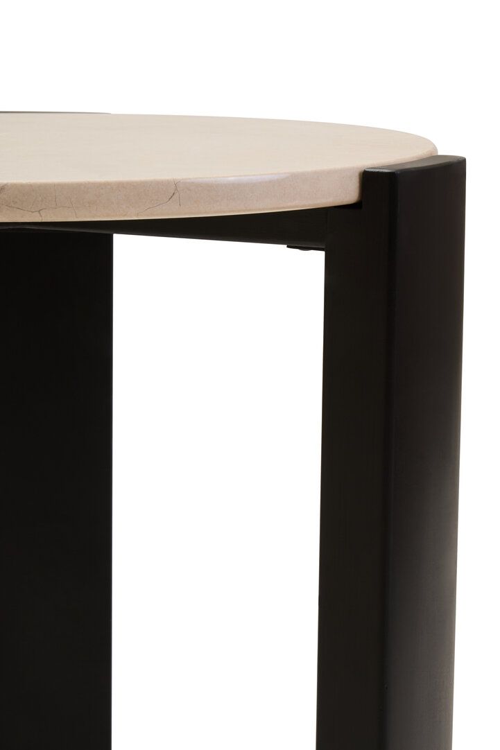 ZERVORA Round Marble Top Wooden Side Table - Black and Cream