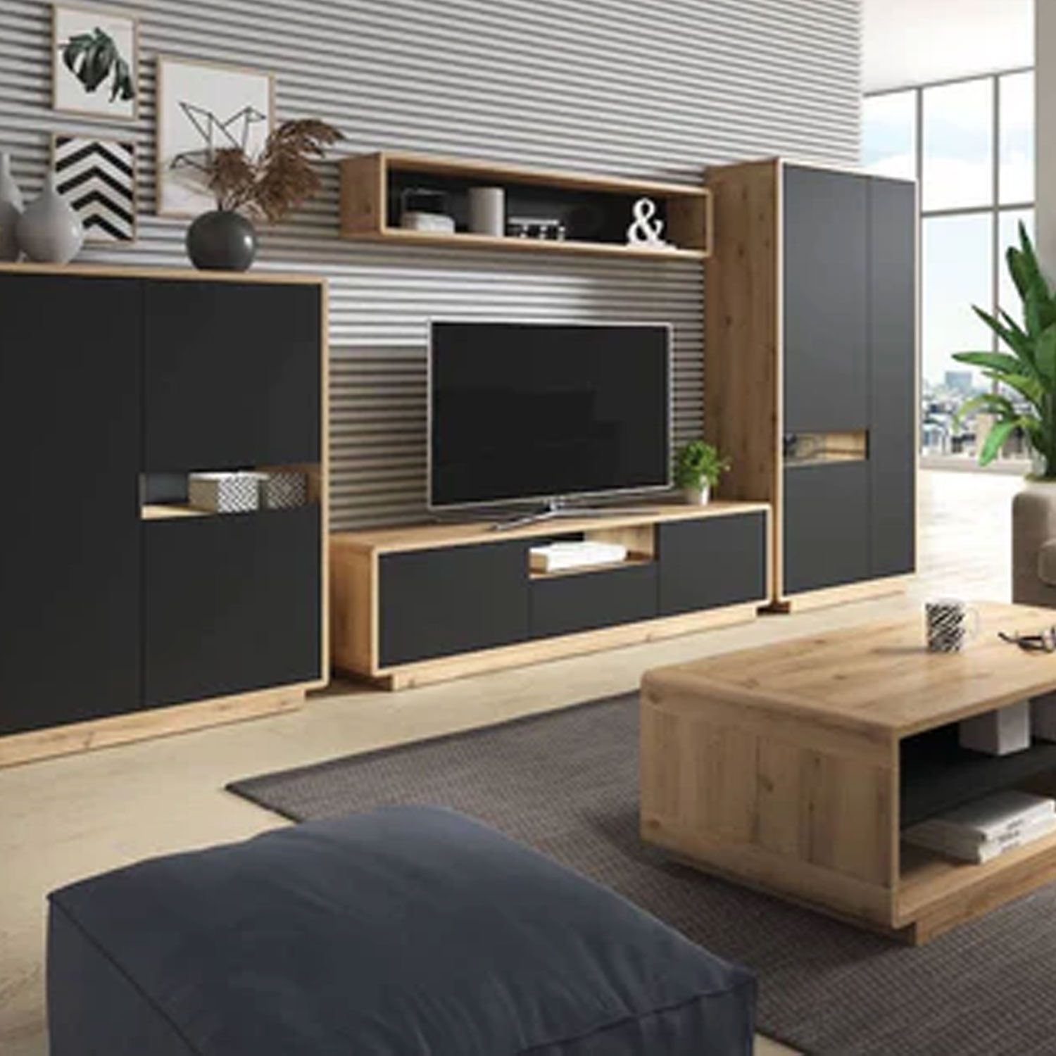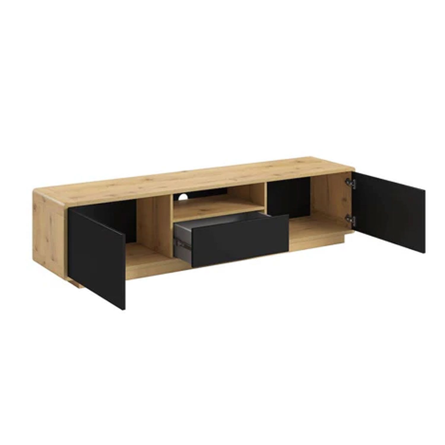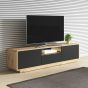Experience the perfect fusion of form and function with the Zion Zenith TV Cabinet. The sleek black matte front and Oak Torus carcass create a contemporary masterpiece. Behind two hinged doors and a drawer, find organized storage for entertainment essentials. The integrated cable management system ensures a clutter-free setup. Crafted from durable 16mm laminated board, this TV cabinet is as sturdy as it is stylish. Assembly is required, offering a personalized touch to your entertainment space.