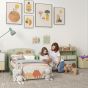 ZONEKIZ Toddler Bed Frame, Kids Storage Shelf Unit with 6 Fabric Bins for Ages 3-6 Years, Green