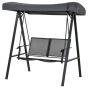 Enjoy the beautiful weather with your family or friend when you lounge in the shade 2 seater garden swing seat. There's an adjustable canopy on top, keeping you shaded and protected from sun and light weather. Two seats to sit with friends, a metal frame for a strong structure. The 'A' shaped legs keep you balanced and steady. Make your garden complete with this stylish outdoor 2 seater swing.