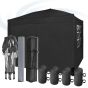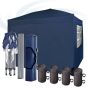 This recreational canopy sets up in just minutes.This canopy comes with a heavy duty steel folding frame, 2 wind bars, double layer roof and sides also guide ropes, pegs, weight bags & a storage carrying bag. Strengthened 2 windbars provided for maximum frame stability, as well as guy ropes and weight bags. Supplied with four side panels - two with church style windows and two with full length zipper doorways. This complete gazebo package has everything to let you set up easily for parties, barbecues and any other events. With our strengthened windbars, the wind will no longer endanger your gazebo, the high quality material and windbars. Also, all the seams (including zips and windows) are taped over to offer extra durability to the stitching.